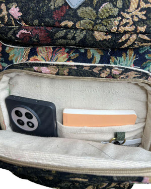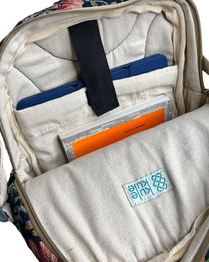 Combining strength with a sophisticated, natural appearance our bags have an exterior made of a premium 300+ GSM cotton jacquard or cotton canvas. Each item, expertly crafted and hand stitched by talented local artists, embodies meticulous craftsmanship while remaining ecologically conscious via limited polyester usage. While completely padded interiors with waterproof lining shield your possessions from impact, rain and daily moisture, the fabric is washable and water resilient. Comfortable all day carrying is guaranteed by a sweat free design, therefore the bag is dependable for regular use in different situations.